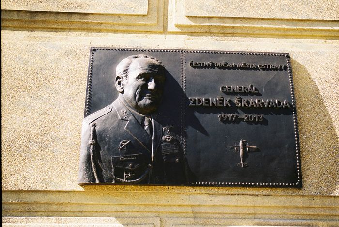Pamětní deska gen. Zdeňka Škarvady na budově ZŠ v Porubě Zdroj: Archiv města Ostravy, Sbírka fotografií
